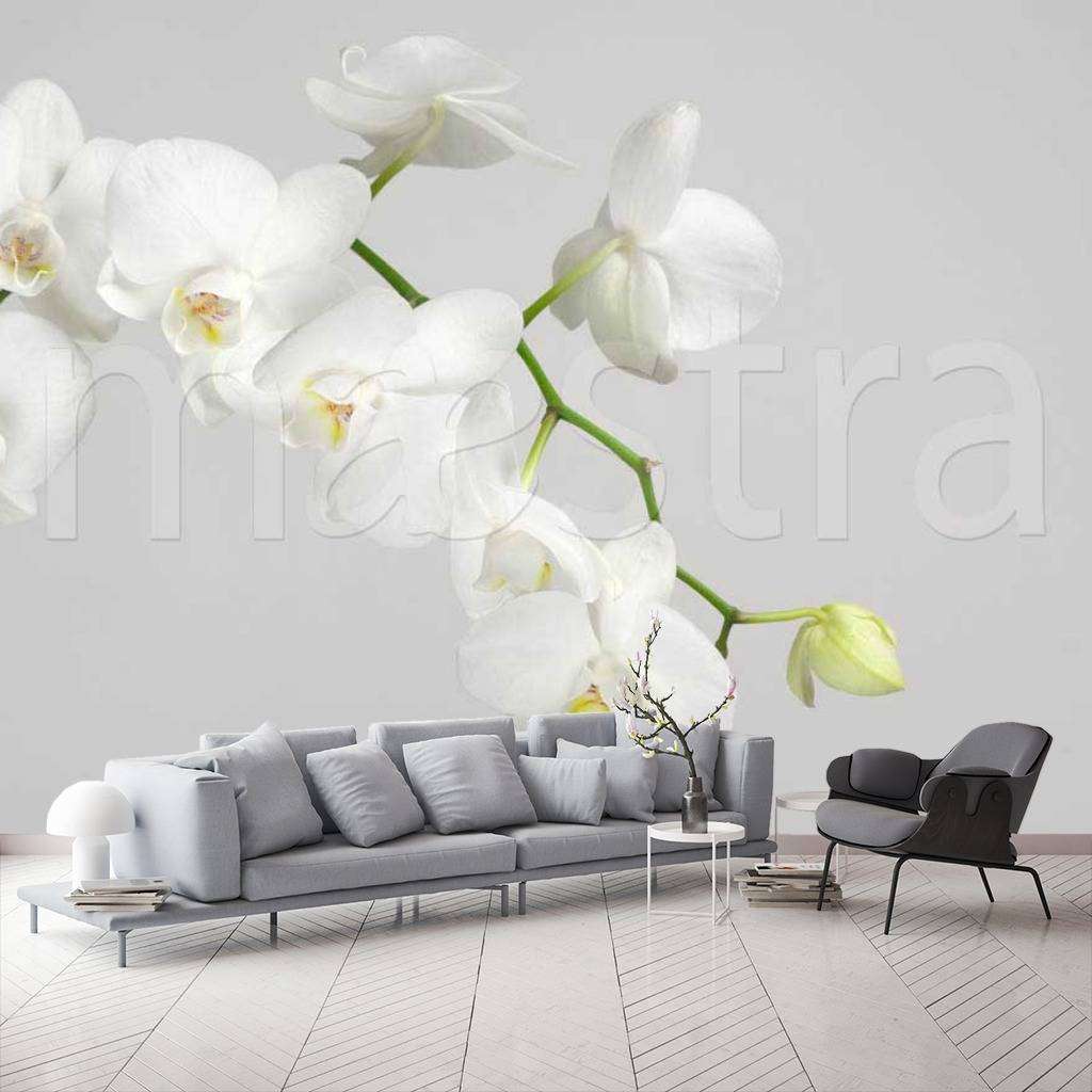 Бесшовные обои на стену: Белая орхидея пышная. Артикул: 10-159