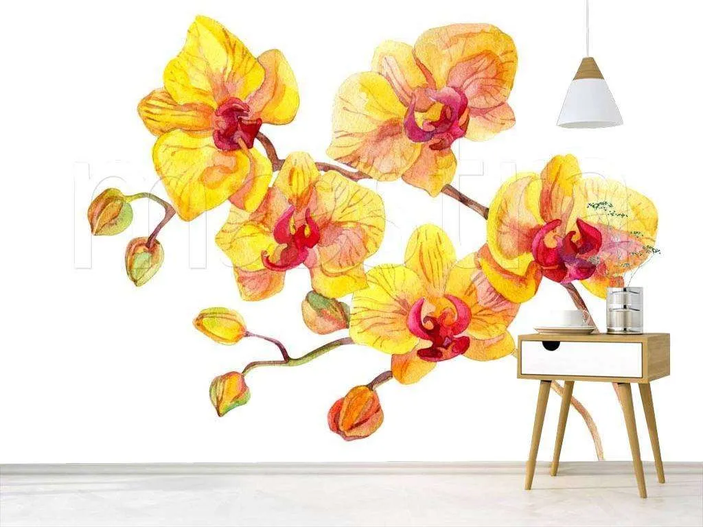 Бесшовные обои на стену: Желтая орхидея на белом фоне. Артикул: 10-176