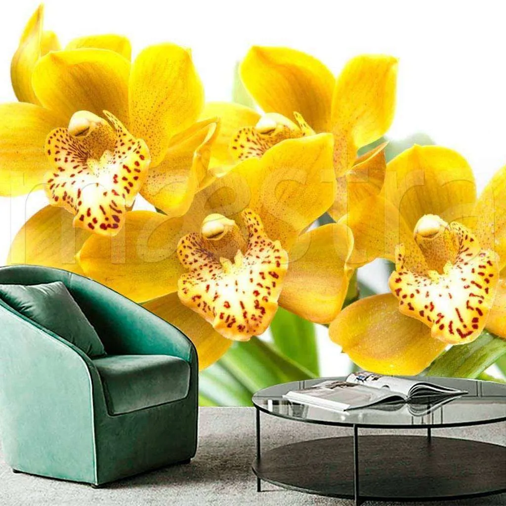 Бесшовные обои на стену: Желтая орхидея с зелеными стеблями. Артикул: 10-187