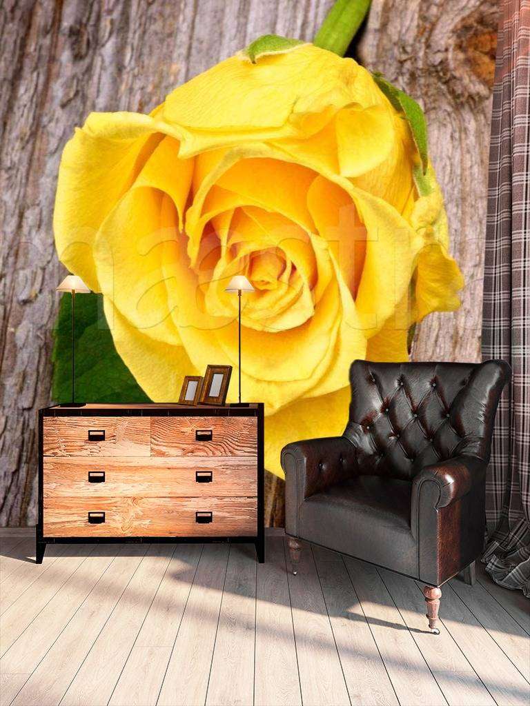 Бесшовные обои на стену: Желтая роза на фоне дерева. Артикул: 10-303