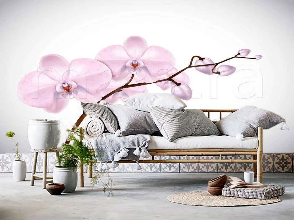 Бесшовные обои на стену: Веточка розовой орхидеи. Артикул: 9-293