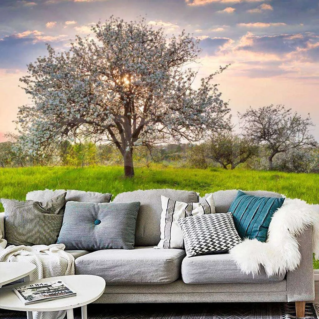 Бесшовные обои на стену: Закат в яблоневом саду. Артикул: 10-094