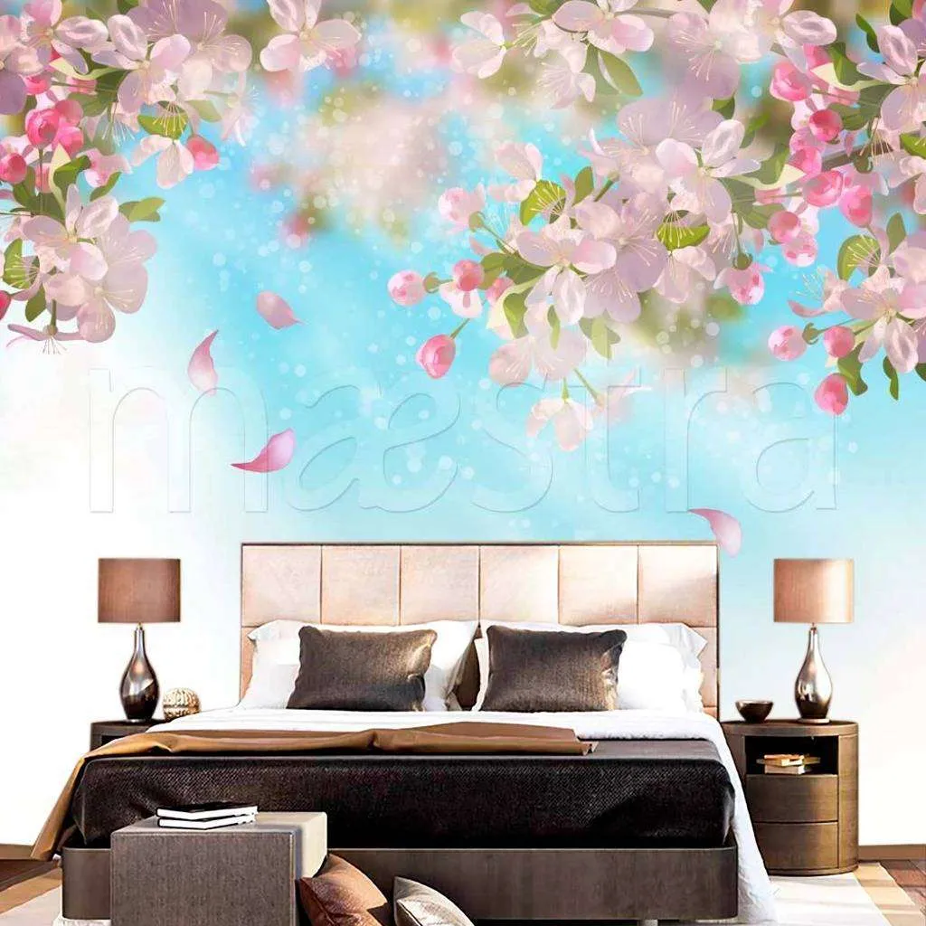 Бесшовные обои на стену: Летящие лепестки сакуры. Артикул: 10-116
