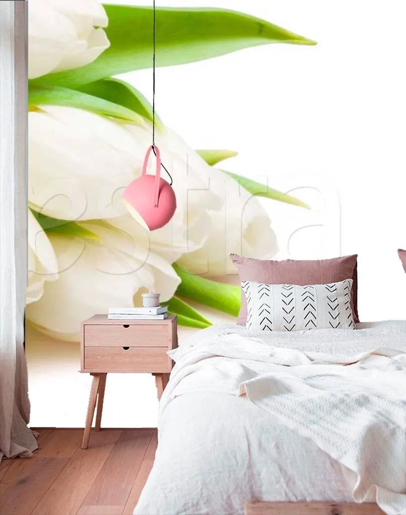 Бесшовные обои на стену: Букет белых тюльпанов. Артикул: 10-145