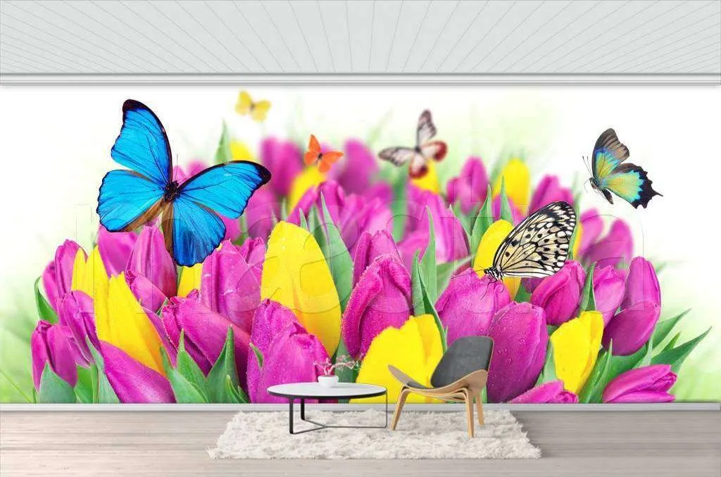 Бесшовные обои на стену: бабочки 3д и цветы. Артикул: 4-092