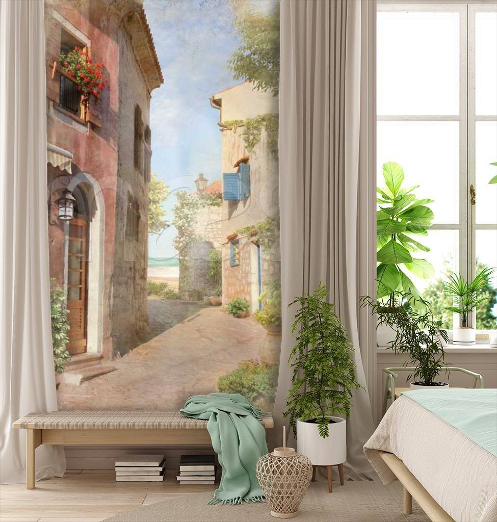 Бесшовные обои на стену: Старинная улочка с выходом на море. Артикул: 11-039