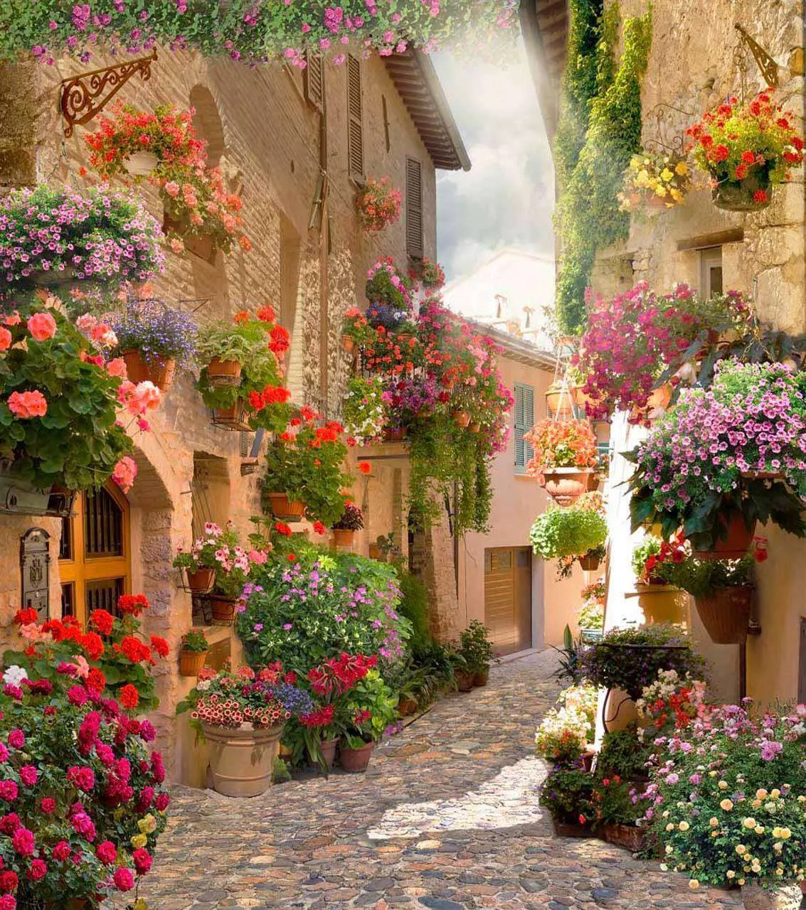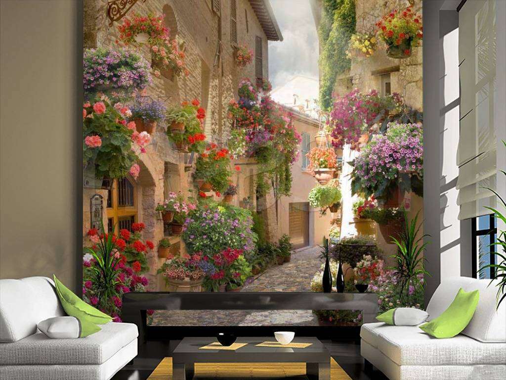 Бесшовные обои на стену: Цветущие улочки Европы. Артикул: 7-173
