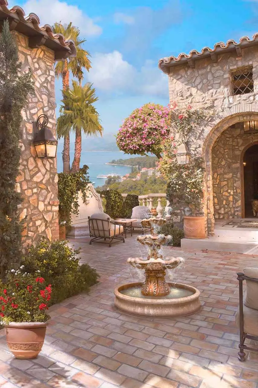 Бесшовные обои на стену: Улочки прованса с фонтаном. Артикул: 7-192