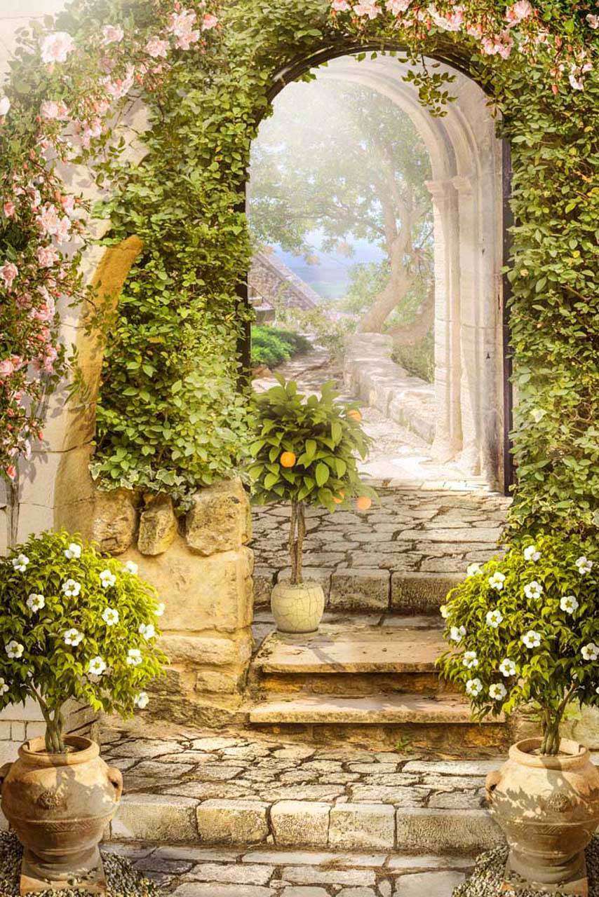 Бесшовные обои на стену: 3д арка с цветами. Артикул: 7-233