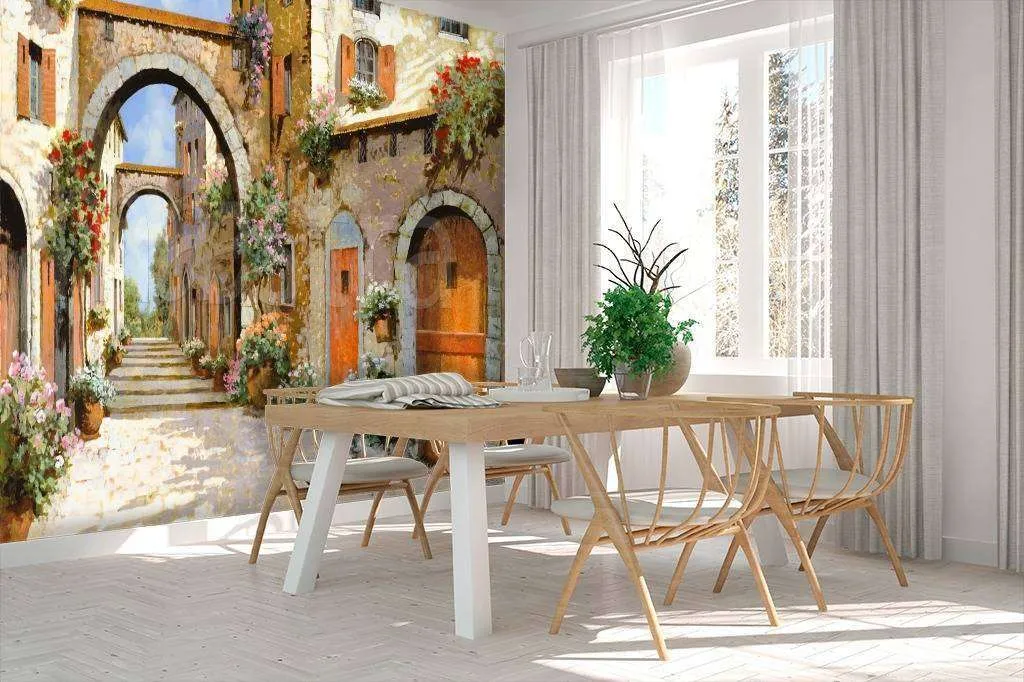 Бесшовные обои на стену: Широкая улочка с арками. Артикул: 8-020