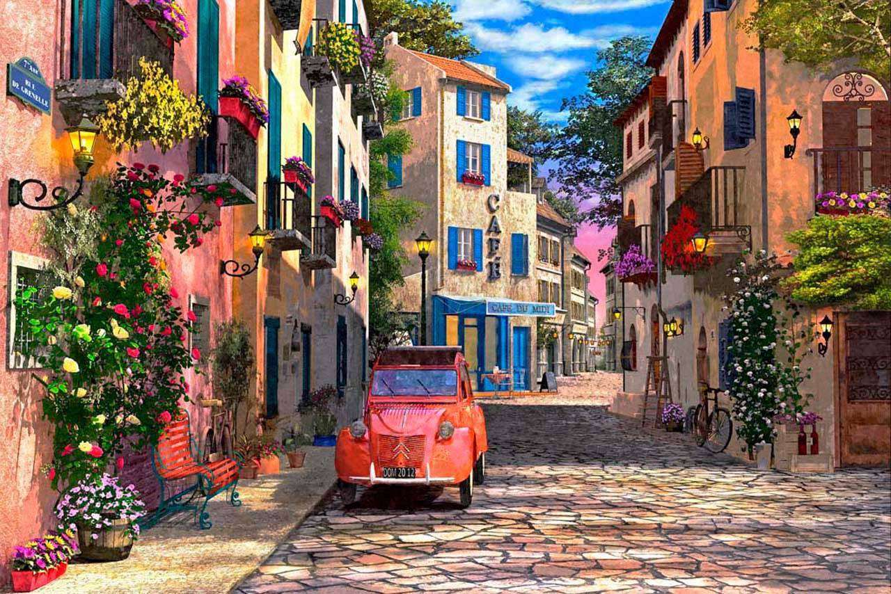 Красное авто на старинной улочке Арт. 8-032