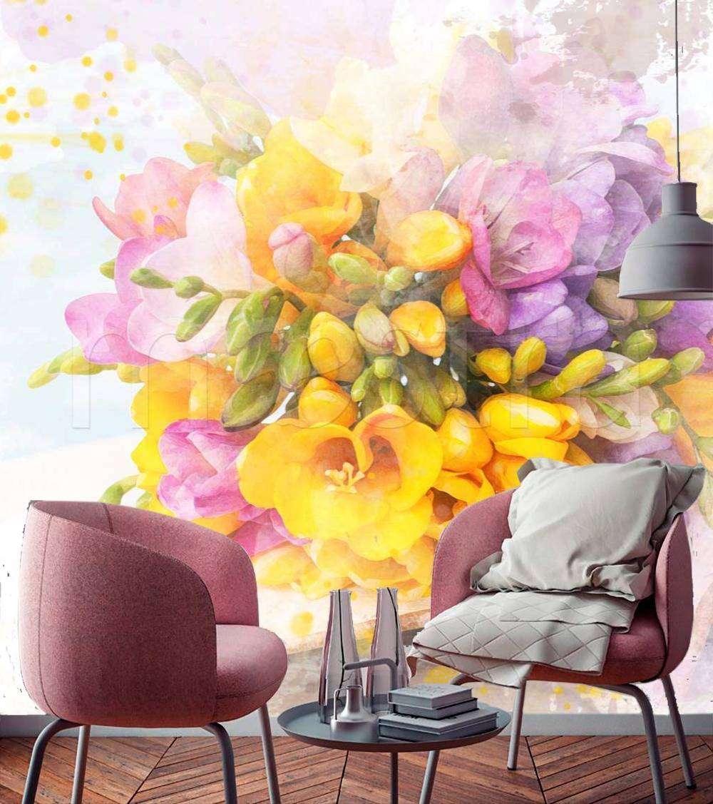 Бесшовные обои на стену: Рисунок с желтыми цветами. Артикул: 9-113