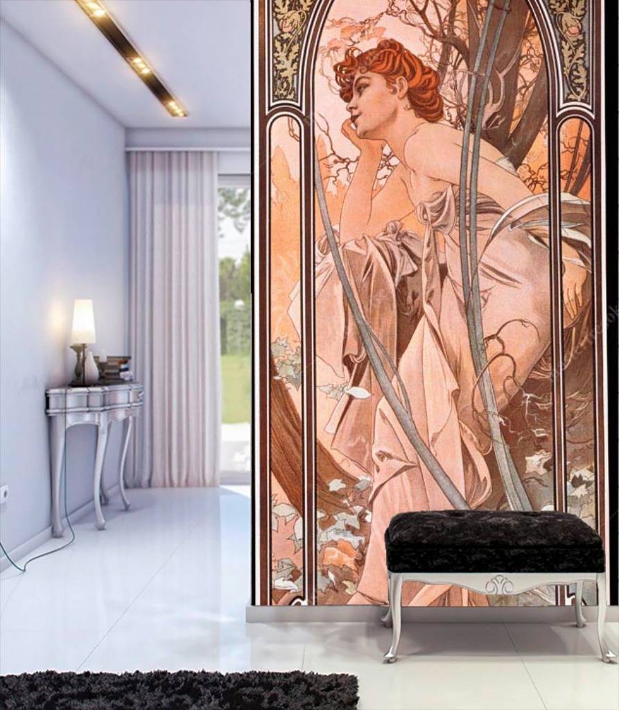 Бесшовные обои на стену: Альфонс Мариа Муха – Вечерние мечты. Артикул: 8-182