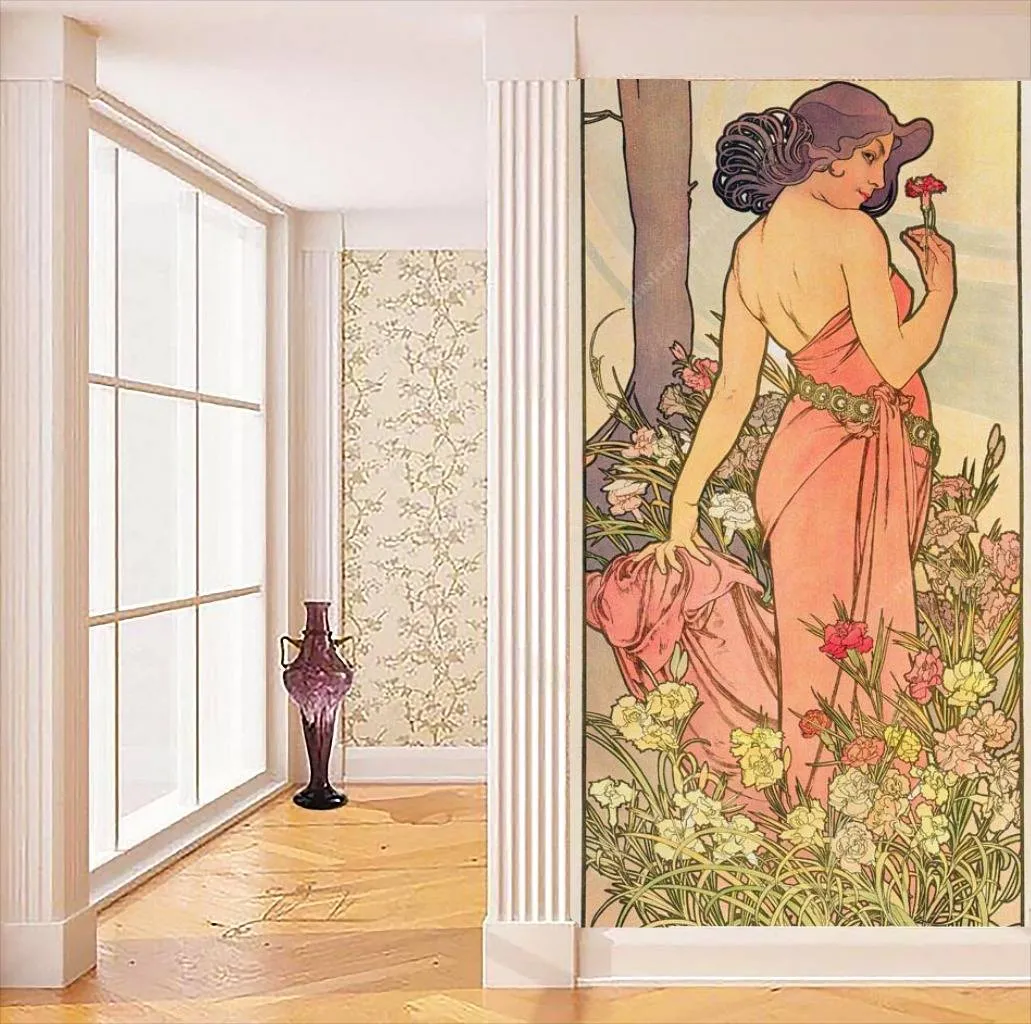 Бесшовные обои на стену: Альфонс Мариа Муха – Гвоздика. Артикул: 8-195