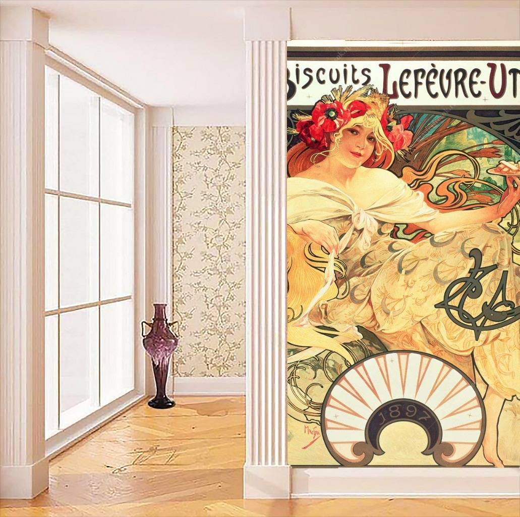 Бесшовные обои на стену: Альфонс Мариа Муха - Реклама бисквитов - Печенье Лефевр Утиль. Артикул: 8-216
