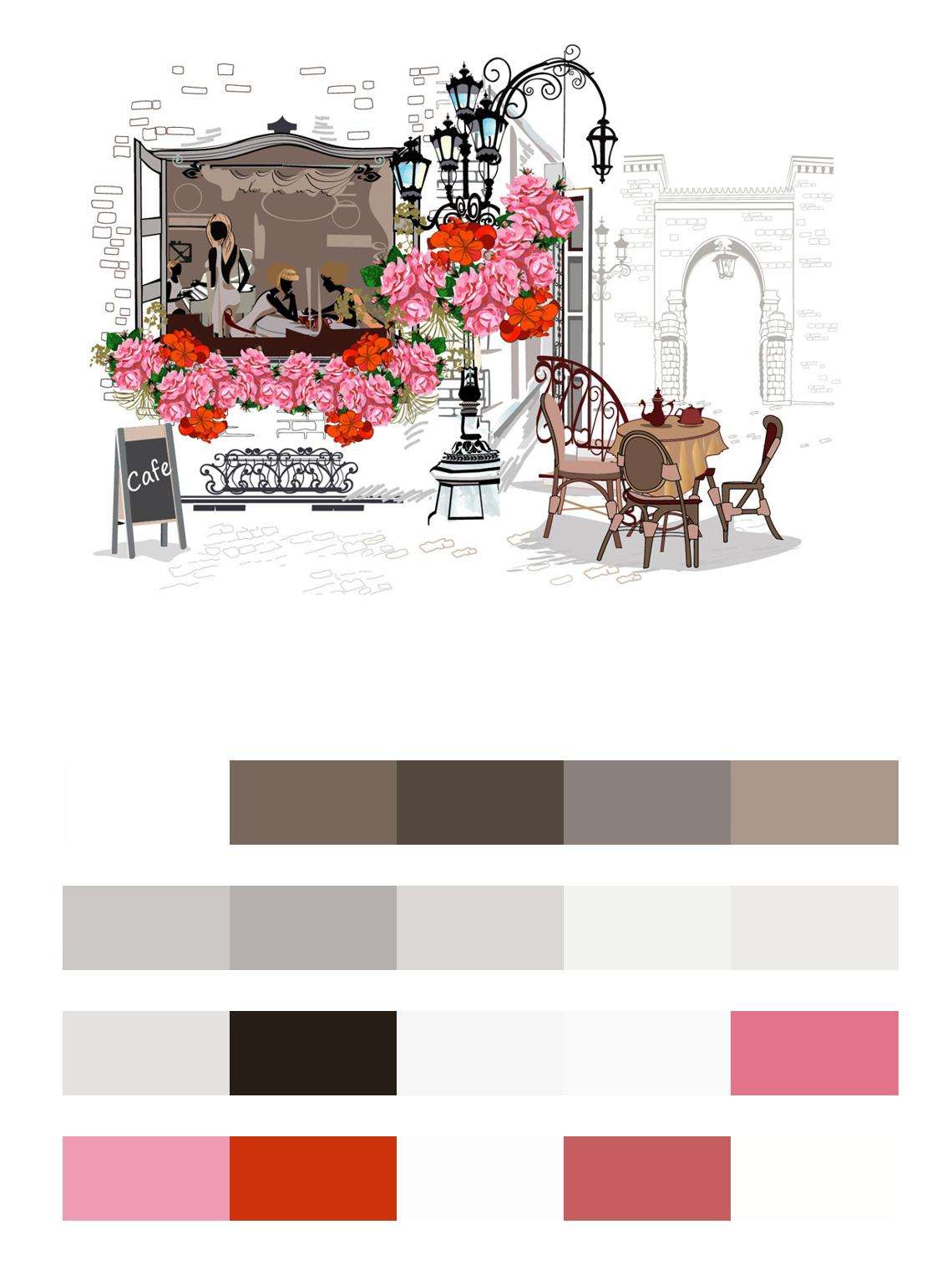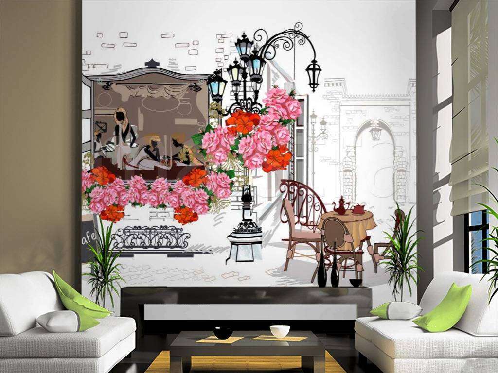 Бесшовные обои на стену: Кафе и розовые цветы. Артикул: 9-137