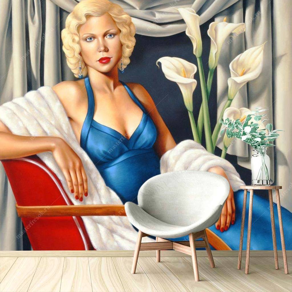 Бесшовные обои на стену: Екатерина Абель - Женщина в платье Sapphire Blue. Артикул: 8-299