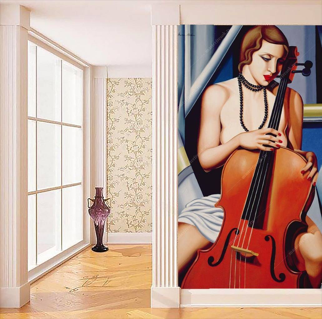Бесшовные обои на стену: Екатерина Абель - Женщина с виолончели. Артикул: 8-300