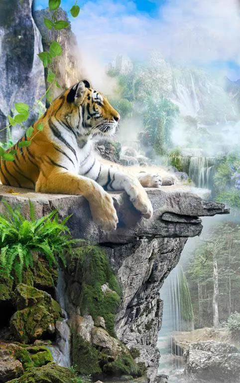 Бесшовные обои на стену: Тигр на скале. Артикул: 13-051