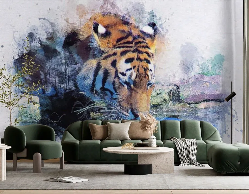 Бесшовные обои на стену: Тигр пьёт воду. Артикул: 17-4302