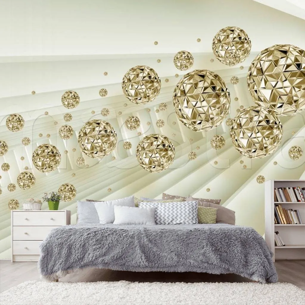 Бесшовные обои на стену: Золотые 3д шары в полёте. Артикул: 10-538
