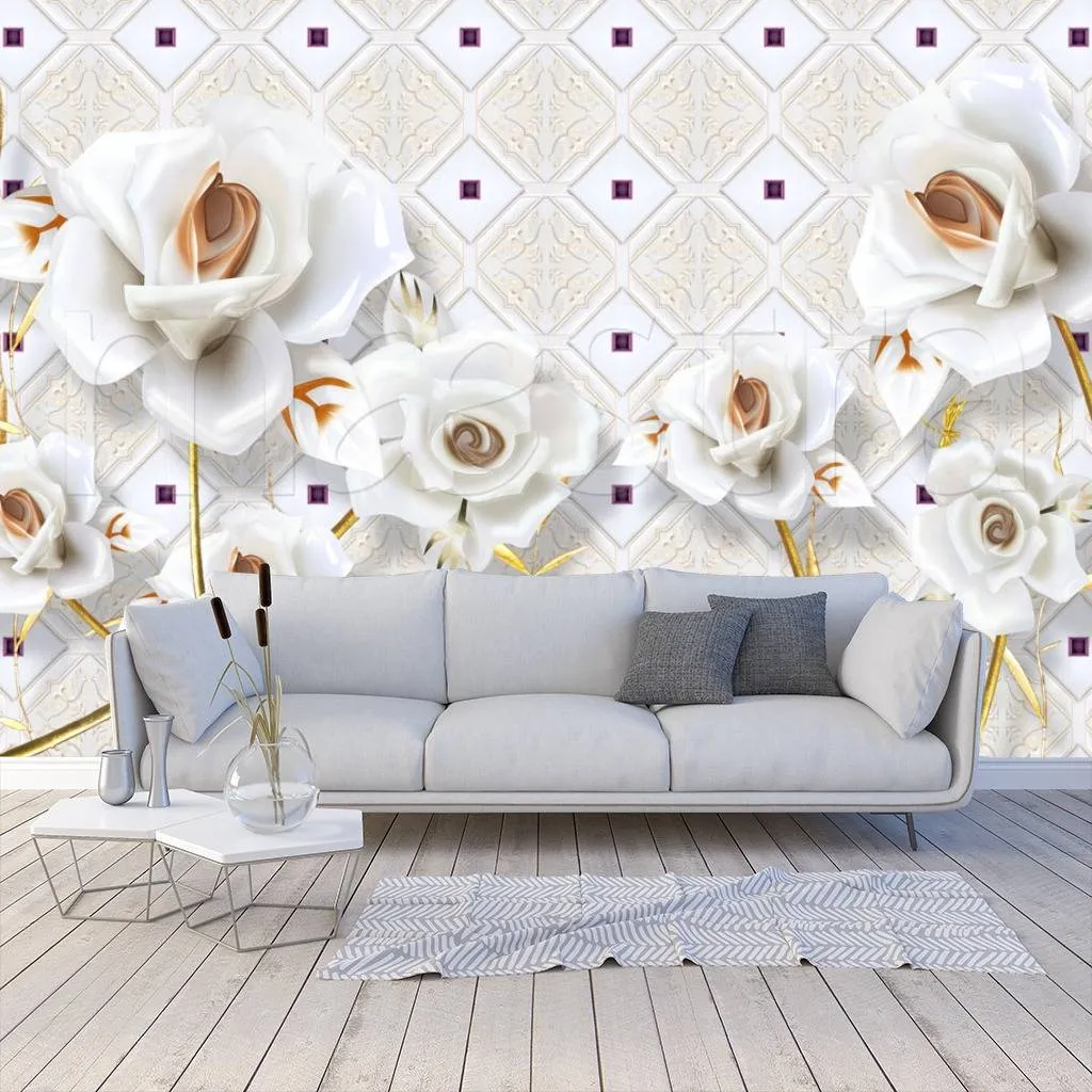 Фотообои в интерьере 3д цветочки  10-573 фото