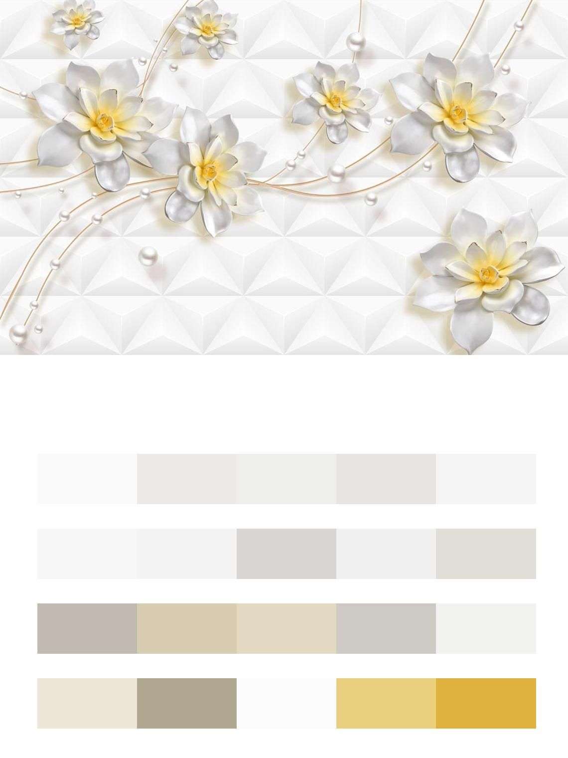 Бесшовные обои на стену: Цветы на белом фоне. Артикул: 10-618