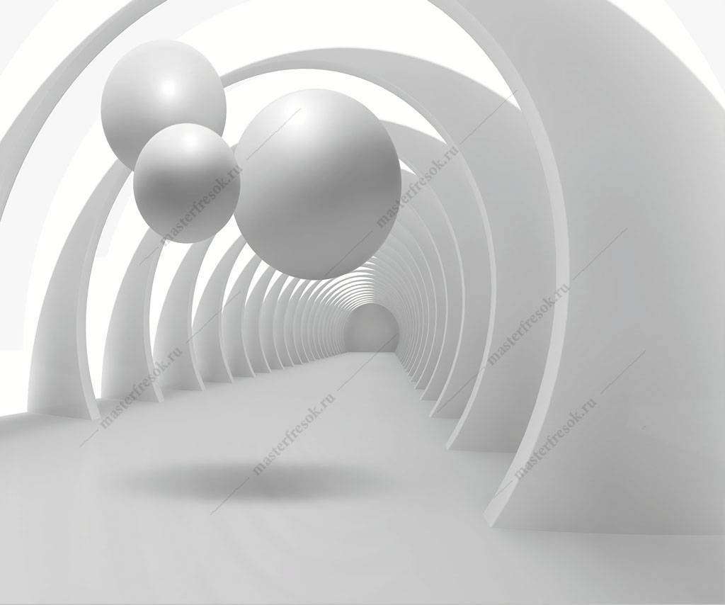 Бесшовные обои на стену: 3д Белый тоннель. Артикул: 10-625