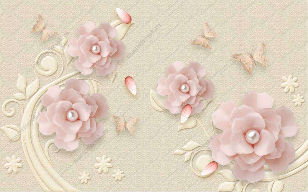 Бесшовные обои на стену: 3д розовые цветы. Артикул: 10-632