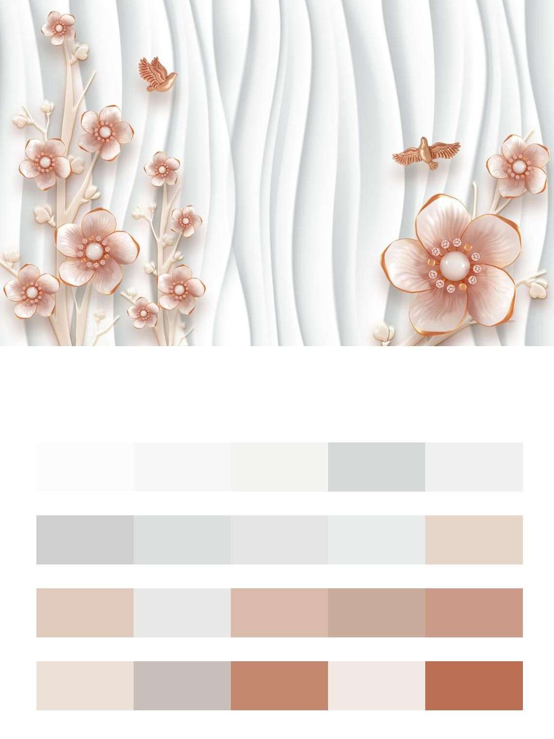 Бесшовные обои на стену: 3д волны и цветы. Артикул: 10-635