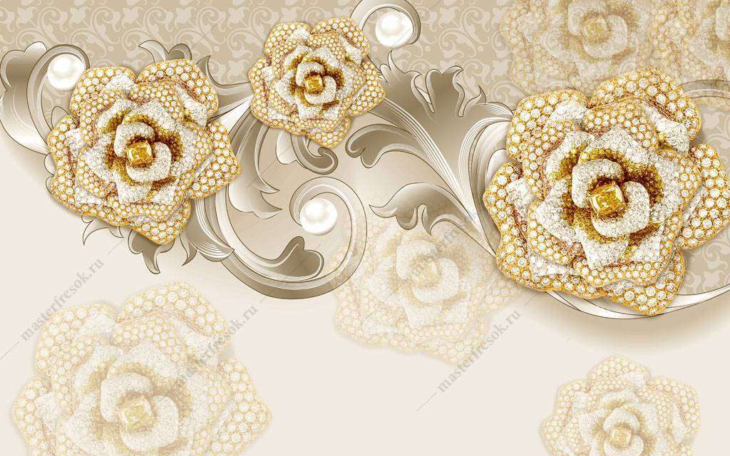 Бесшовные обои на стену: 3д золотые розы. Артикул: 10-642