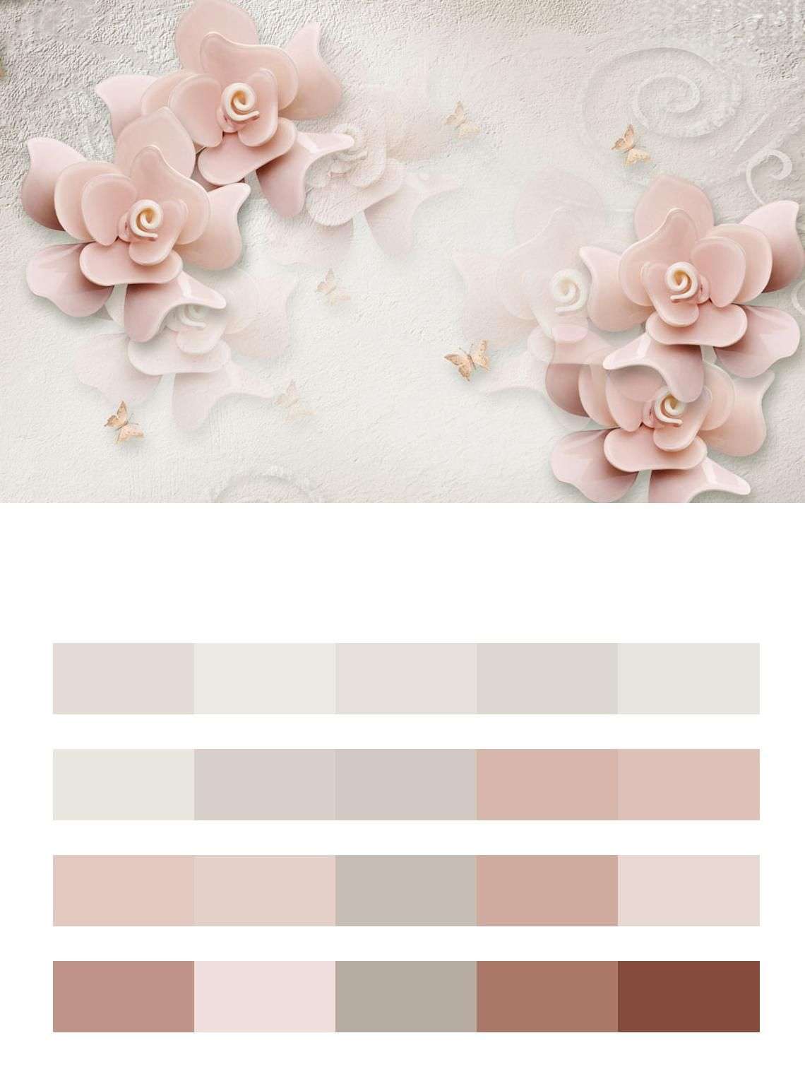 Бесшовные обои на стену: 3д пыльно розовые цветы. Артикул: 10-645