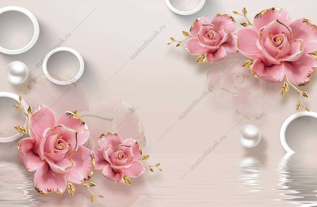 Бесшовные обои на стену: 3д розовые цветы. Артикул: 10-660