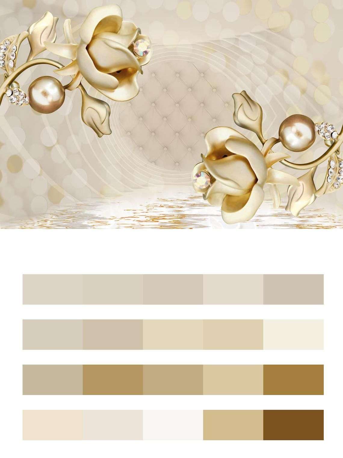 Бесшовные обои на стену: 3д Цветы из золота. Артикул: 10-924