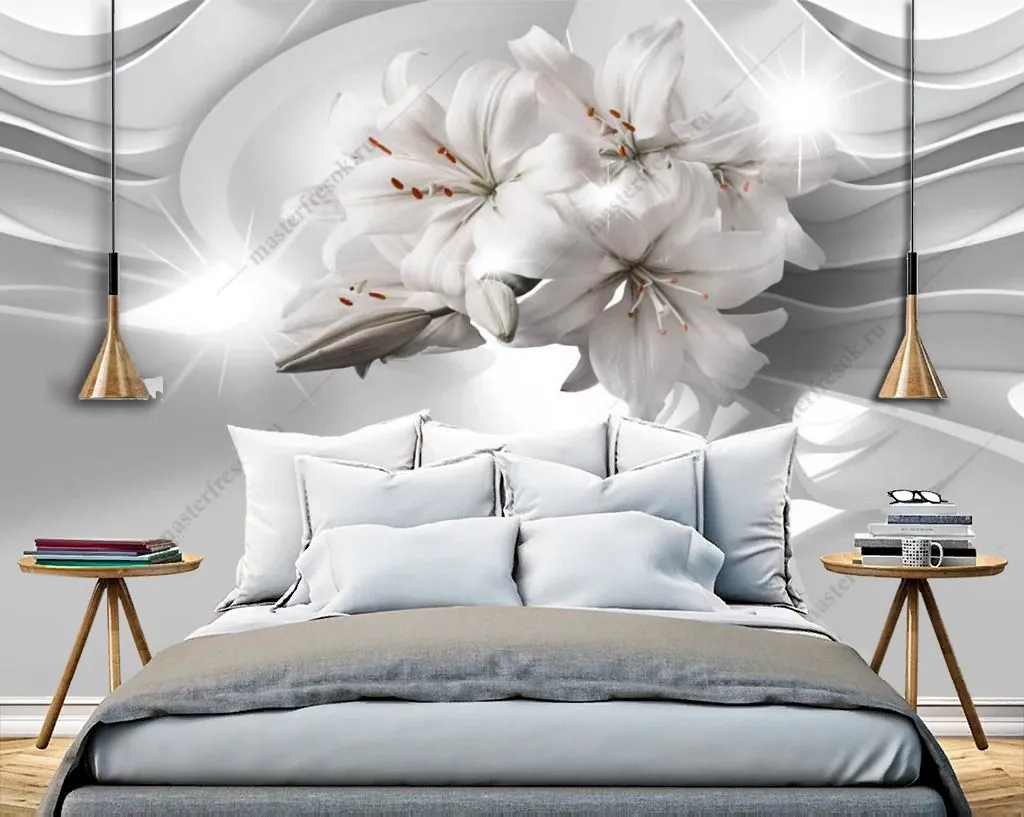 Бесшовные обои на стену: 3д лилии. Артикул: 10-933