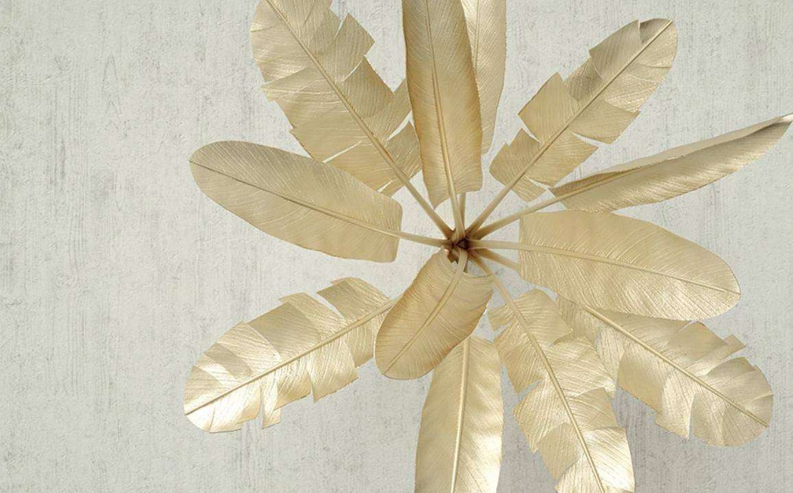 Бесшовные обои на стену: 3д золотые листья. Артикул: 15-415