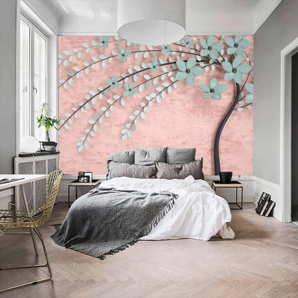 Бесшовные обои на стену: Дерево 3д голубое. Артикул: 15-452