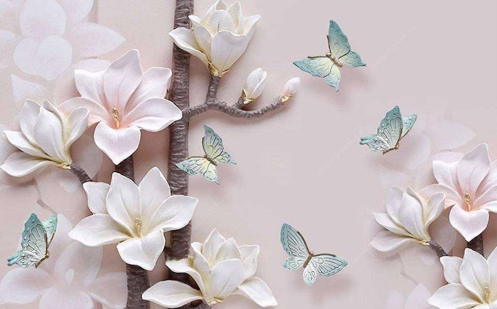 Бесшовные обои на стену: Цветы и бабочки. Артикул: 15-615