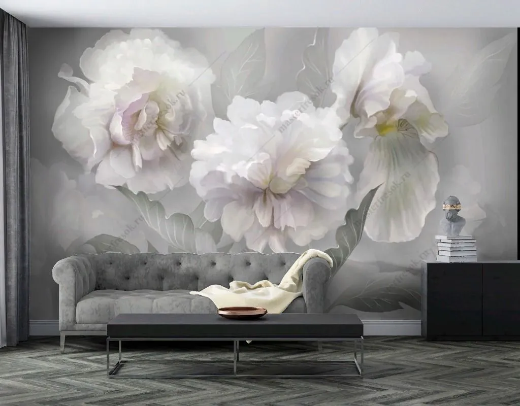 Бесшовные обои на стену: 3D пионы. Артикул: 13-487