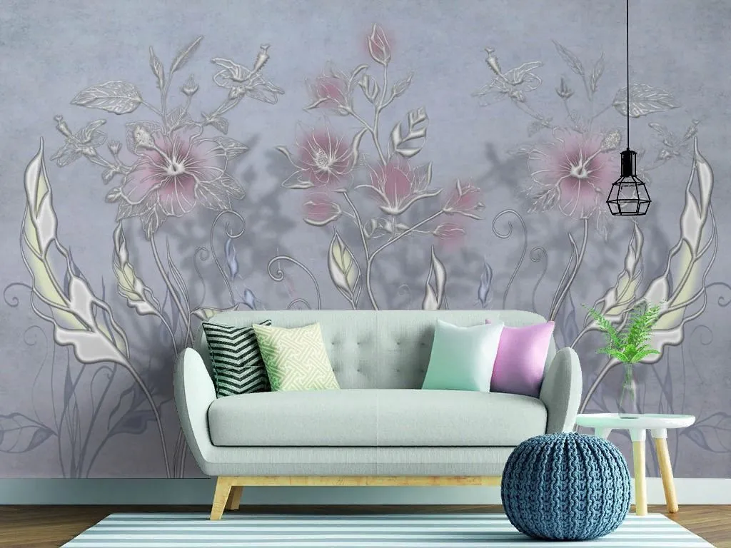 Бесшовные обои на стену: Объемный рисунок цветы. Артикул: 13-746