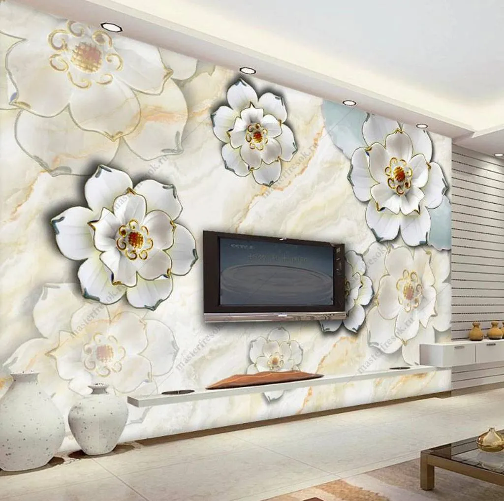 Бесшовные обои на стену: Цветы 3д с позолотой. Артикул: 16-184