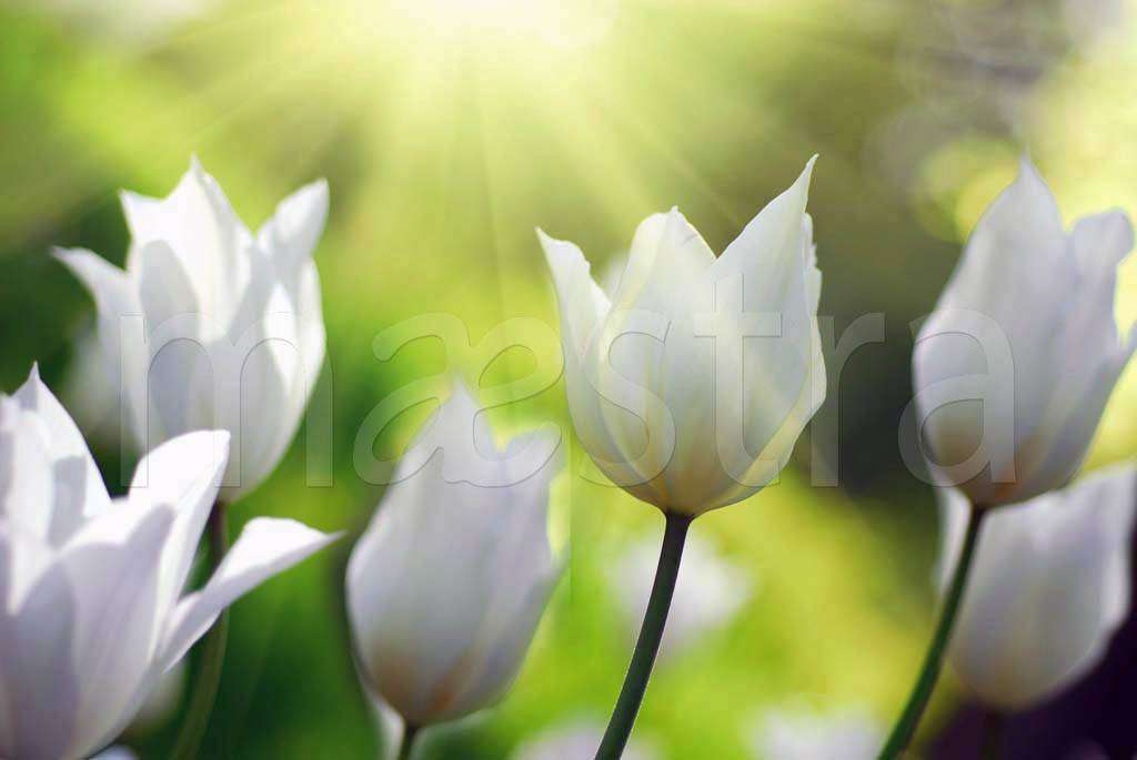 Бесшовные обои на стену: Белые тюльпаны. Артикул: 4-054