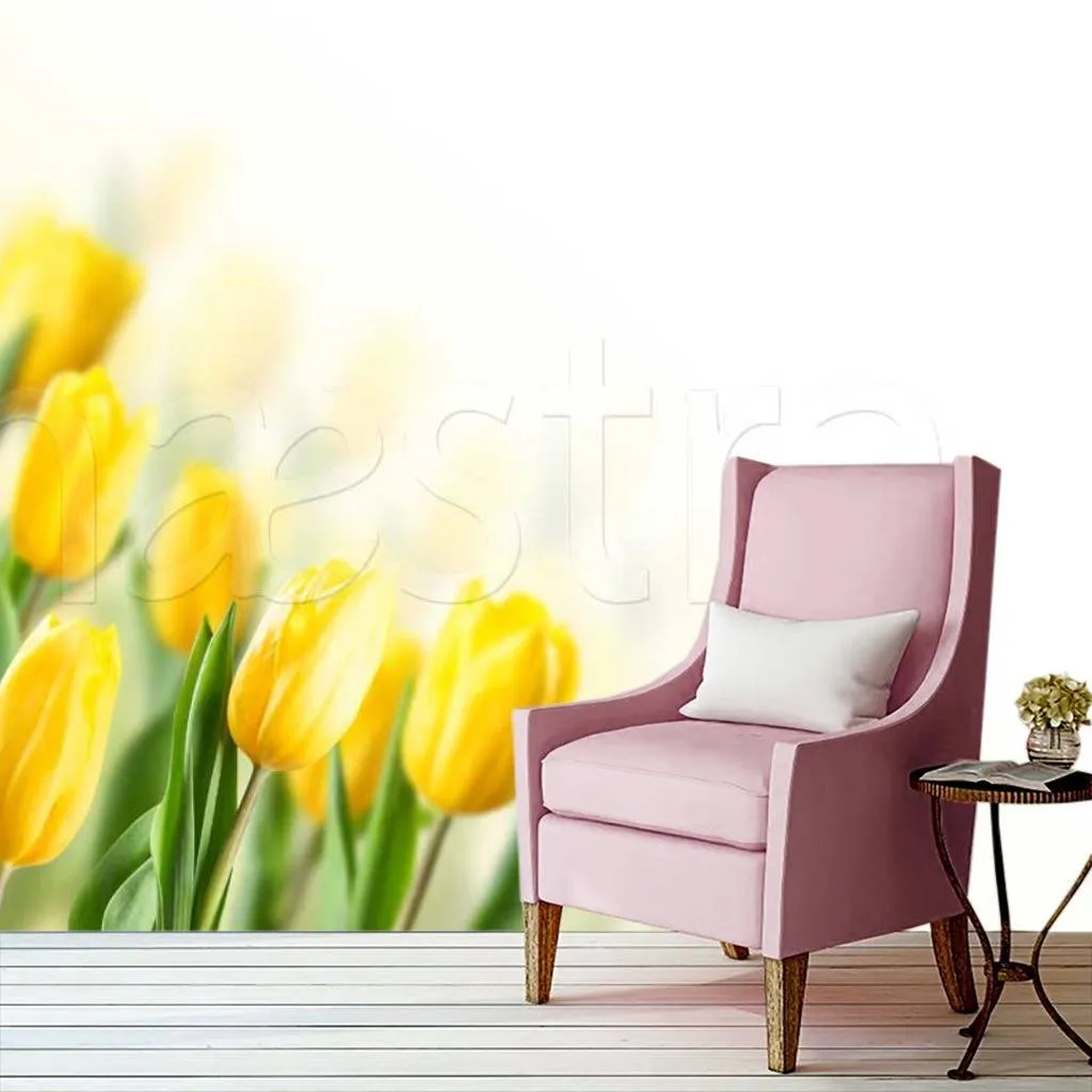 Бесшовные обои на стену: Букет желтых тюльпанов. Артикул: 10-132