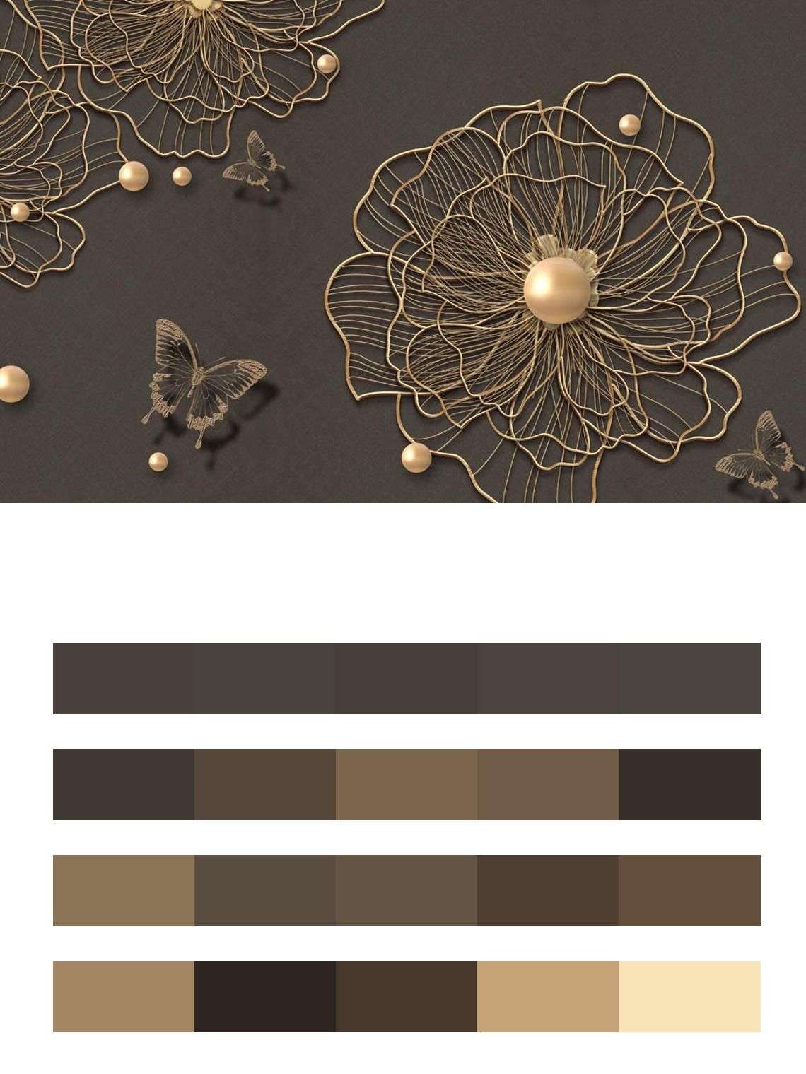 Бесшовные обои на стену: 3д Золотые цветы. Артикул: 10-861