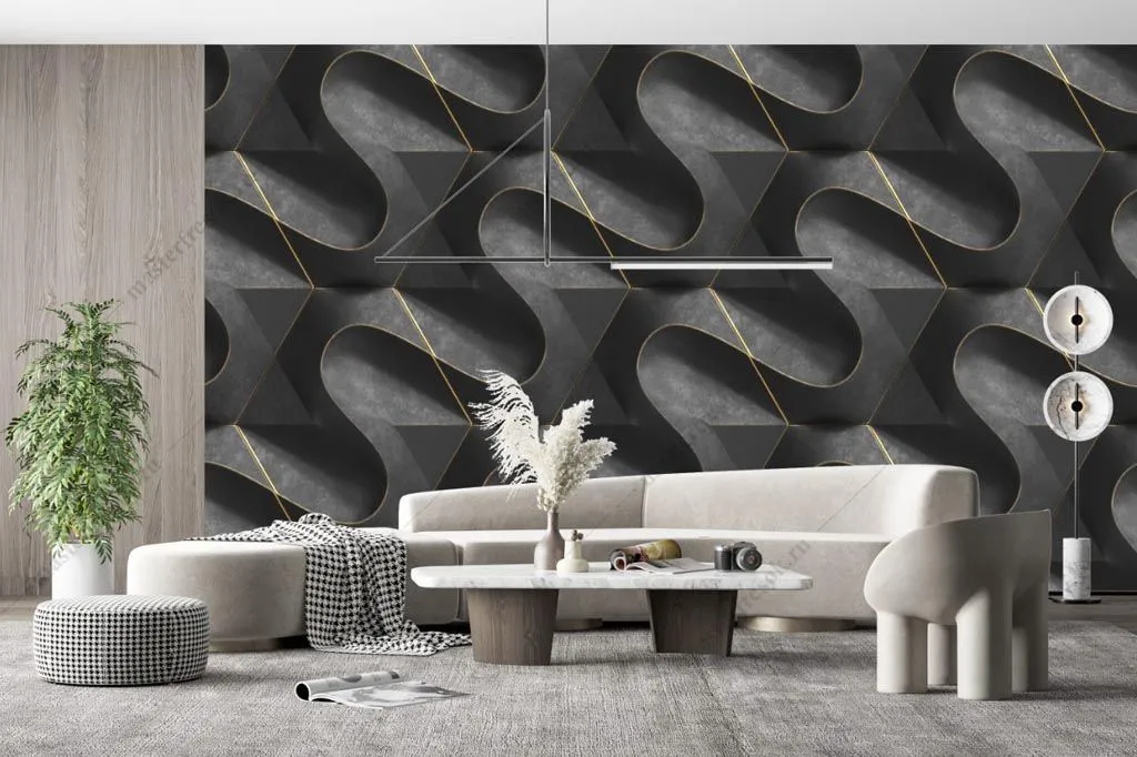Фотообои в интерьере черная 3д панель  9-1591 фото