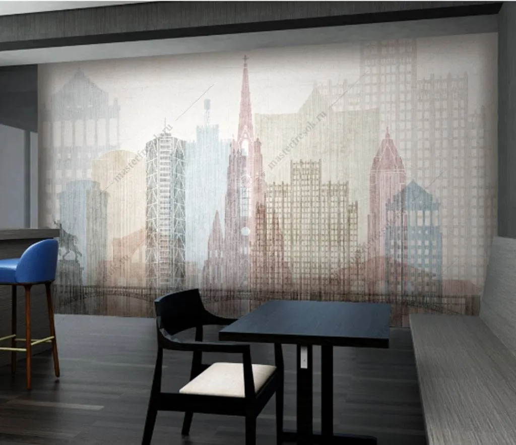 Бесшовные обои на стену: Иллюстрация города. Артикул: 15-864
