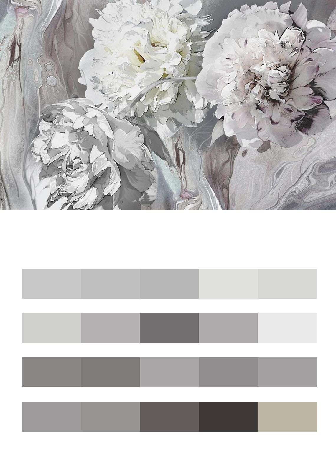 Пионы 3д серые  13-230