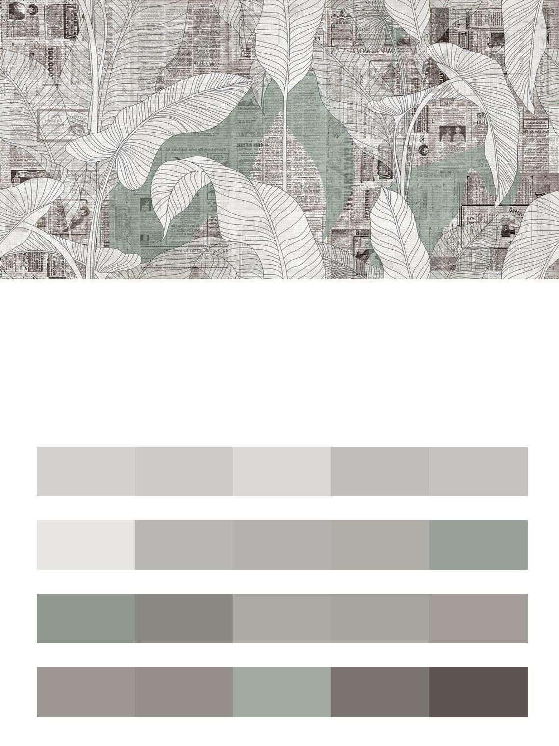 Бесшовные обои на стену: Старая газета и тропические листья. Артикул: 9-1246