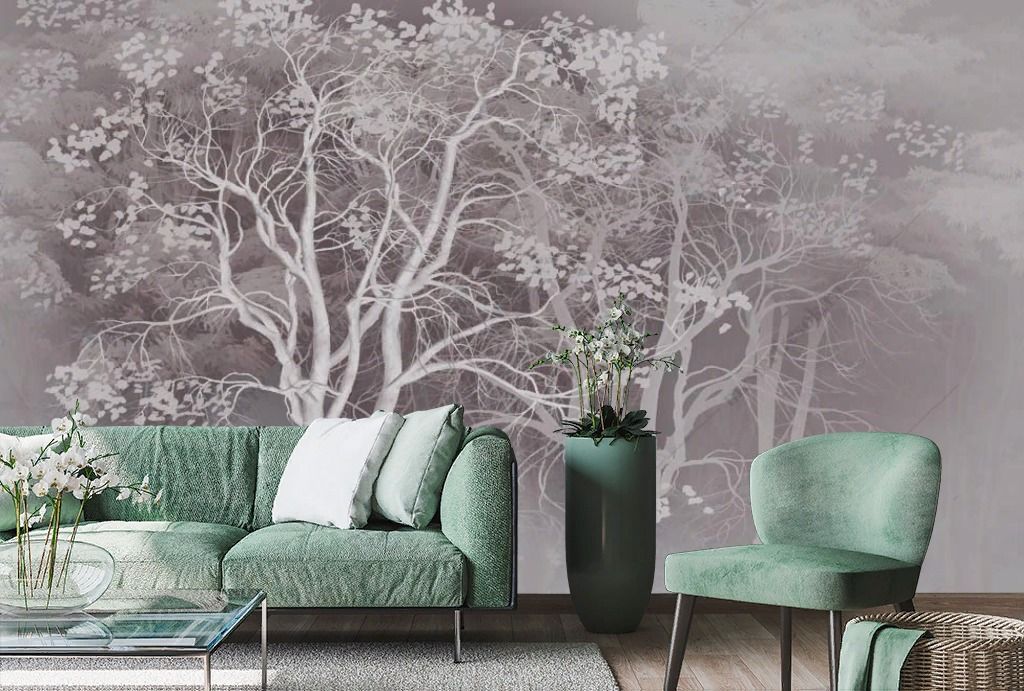 Фотообои в интерьере деревья на бежевом фоне  13-357 фото