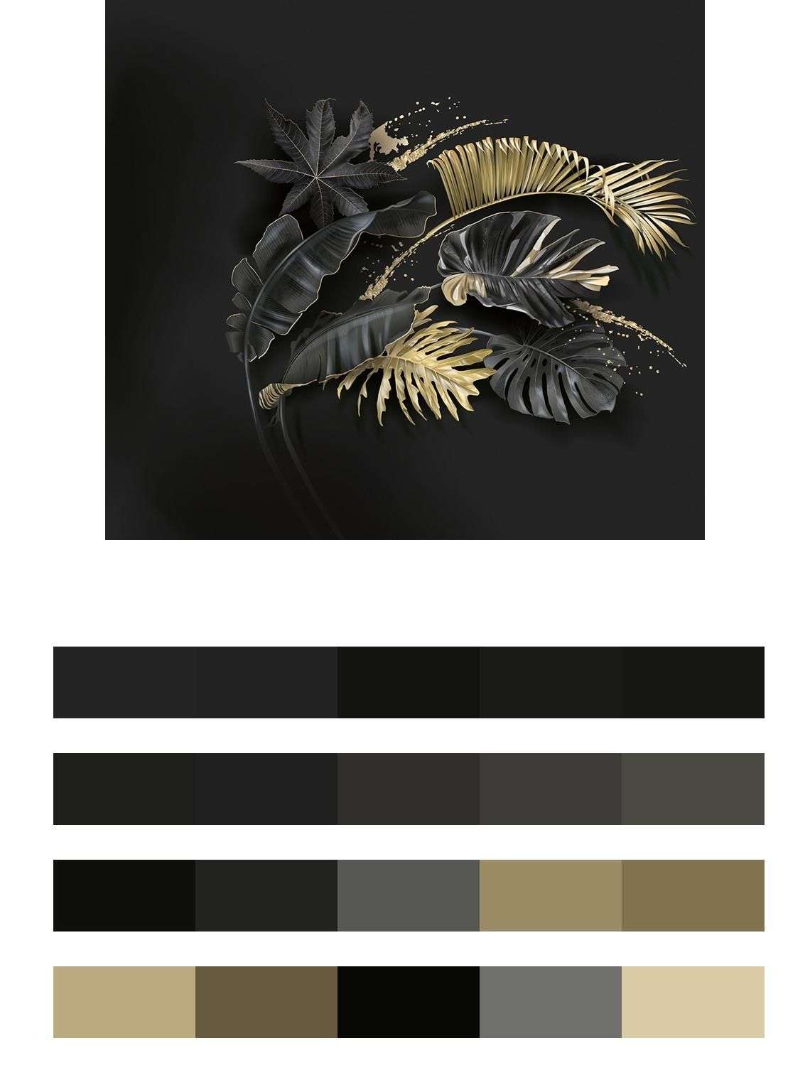 Бесшовные обои на стену: Золотые тропические ветви. Артикул: 10-985